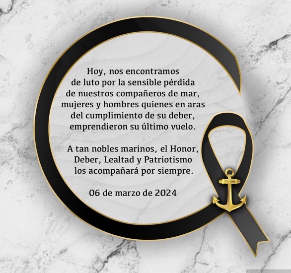 La Secretaría de Marina-Armada de México, lamenta el deceso de quienes perdieron la vida en este accidente; personal naval, que en vida dio muestra del servicio y entrega a la nación.