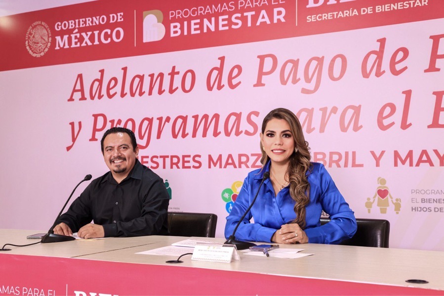 Chilpancingo, Gro., 07 de febrero de 2024.- La gobernadora Evelyn Salgado Pineda y el delegado federal de los Programas para el Bienestar en Guerrero, Iván Hernández Díaz, anunciaron el adelanto del pago de dos bimestres de los programas Pensión para el Bienestar de los Adultos Mayores, Pensión para el Bienestar de las Personas con Discapacidad, y el Apoyo para el Bienestar de Niñas y Niños Hijos de Madres Trabajadoras a más de 470 mil beneficiarios con una inversión superior a los 5 mil millones de pesos.