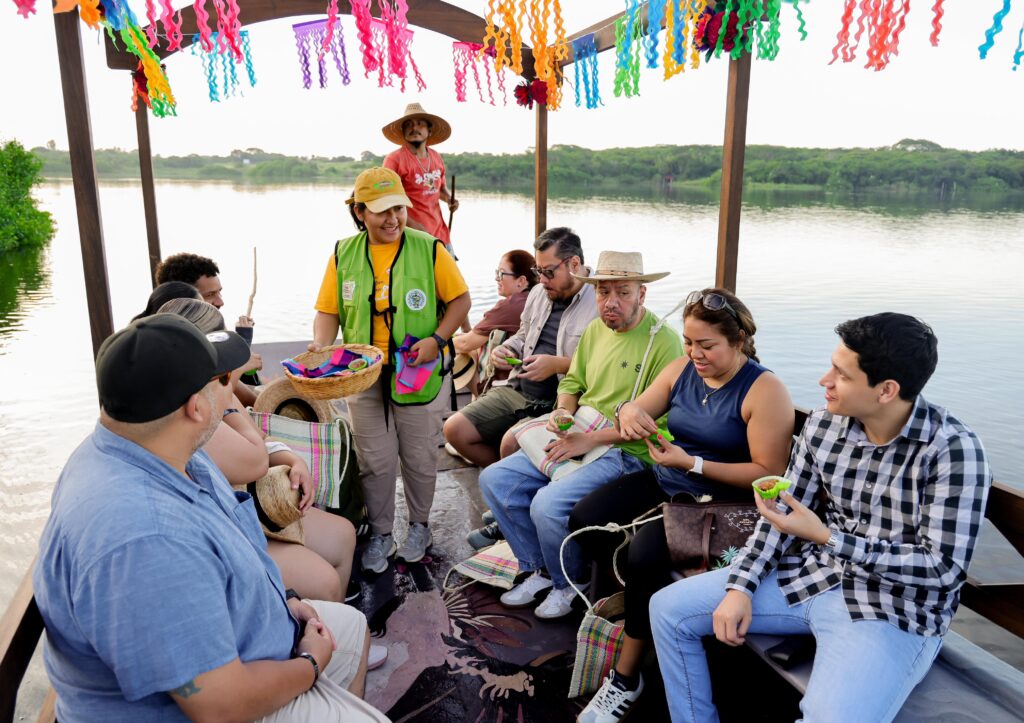 La jornada inició en el Refugio de Potosí, donde los invitados disfrutaron de un recorrido en la trajinera La Chachalaca, apreciando la gran diversidad de especies que habitan en la laguna y los manglares. Posteriormente, visitaron el Museo de Sitio de la Soledad de Maciel, espacio que resguarda valiosas piezas arqueológicas que reflejan la grandeza cultural de la zona.