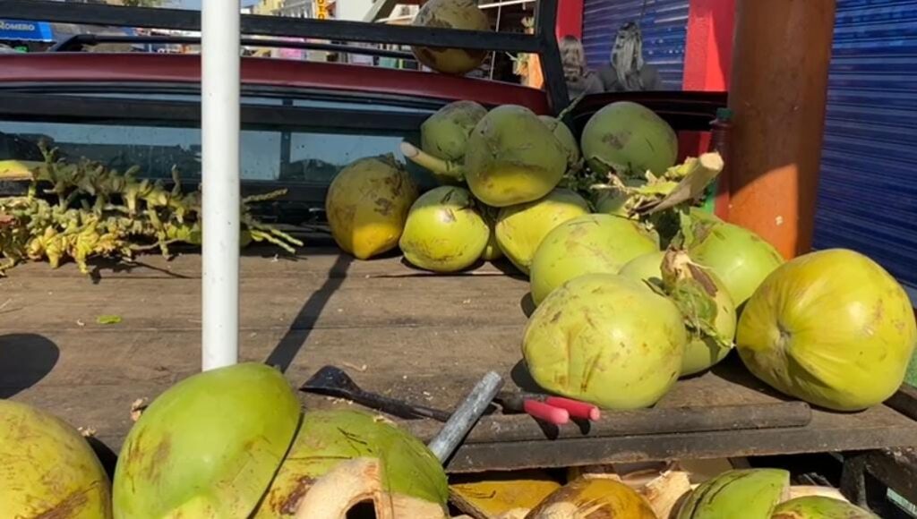 “Lejos de que el calor nos permita vender más cocos, estamos siendo afectados porque nuestras palmas no están produciendo como debieran debido a la falta del agua, así es, ahorita por ejemplo, yo no abastezco la demanda que durante muchos años del mercado local del coco fruta que tenía yo diario de más o menos un promedio de 200, 300 cocos diarios, ahorita hemos bajado hasta 50 cocos, ha bajado drásticamente la cantidad de cocos de selección, porque la mayor parte se ha quedado en coco muy pequeño que no da el tamaño de mercado”.