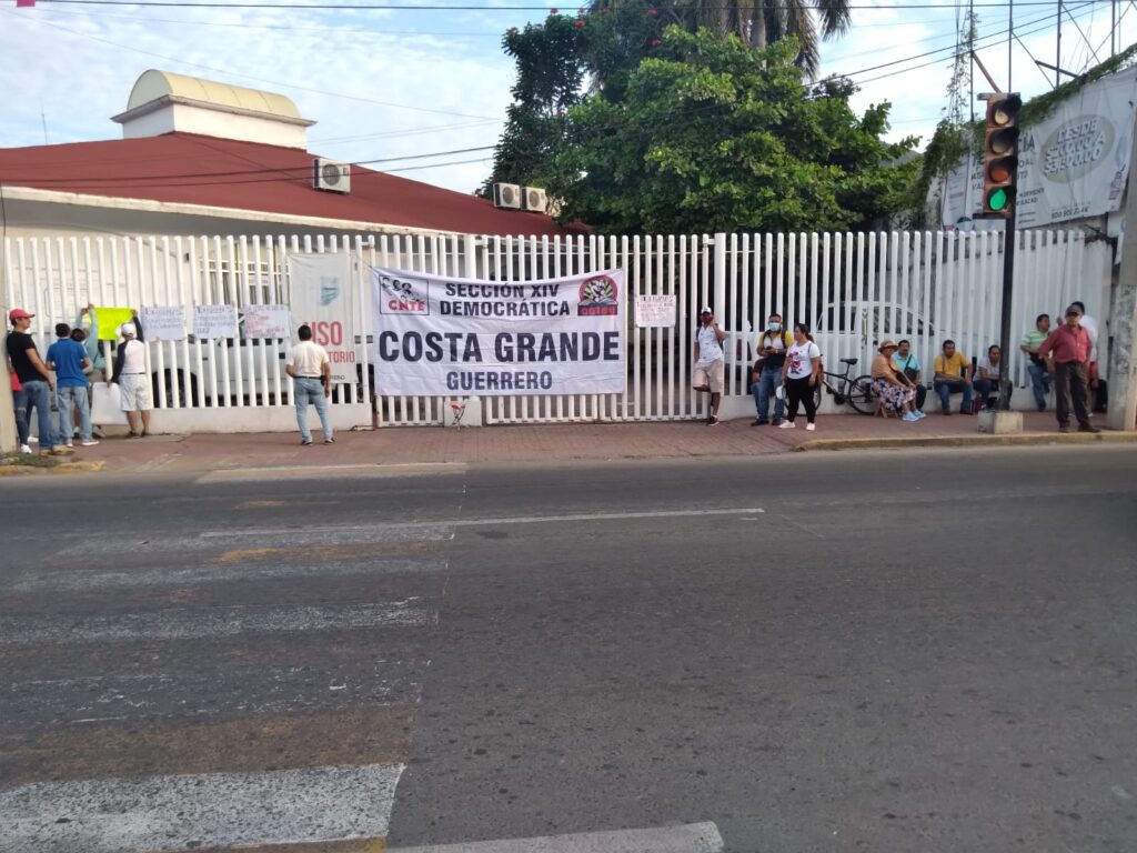Unos 180 maestros adheridos a la sección 14 democrática de la CETEG en la Costa Grande, pararon labores y tomaron la oficina de finanzas en Zihuatanejo para exigir solución a sus demandas.