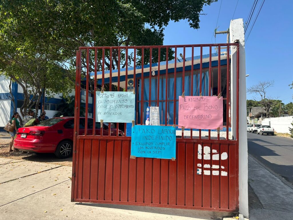 (Ruth Sánchez/ Zihuatanejo, Gro, a 17 de febrero de 2026).-Docentes del sistema de Educación Media Superior en Guerrero, conocidos como homologados del CETIS 45, iniciaron un paro indefinido tras denunciar el incumplimiento en el pago de un bono anual de 11 mil 600 pesos, prestación que aseguran se otorga desde hace más de 13 años y que en la última década no ha registrado incremento alguno.