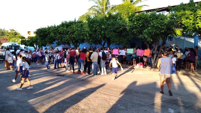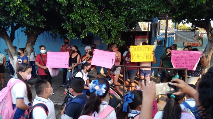 Los padres denunciar que no les enviaron a dos maestros para los dos grupos de cuarto grado, además exigieron la renovación del contrato a tres de los profesores y entrega de basificación porque tienen cuatro años trabajando de esta forma.