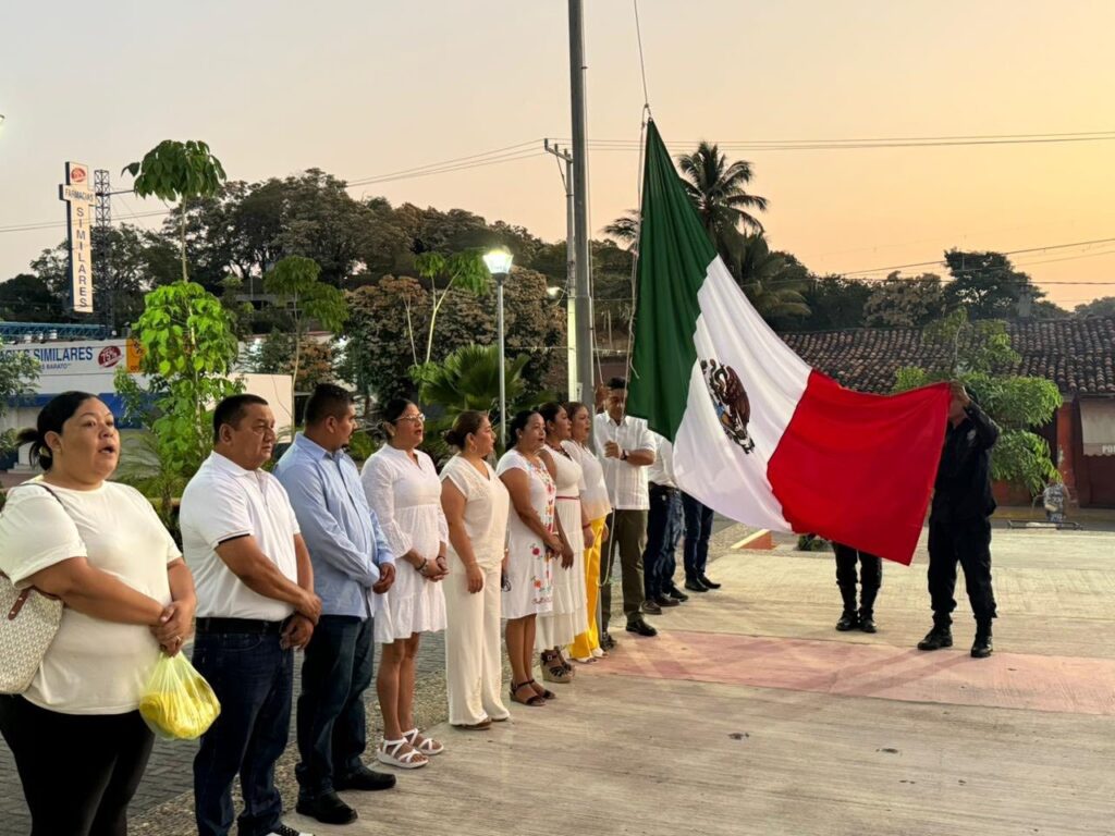 El acto inició con el izamiento de la Bandera por parte del presidente municipal y miembros del ayuntamiento, como homenaje a quienes impulsaron los ideales de libertad y justicia.