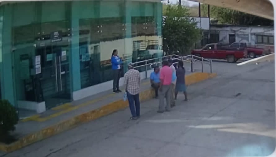(Brenda Escobar/ Zihuatanejo, Gro, a 18 de marzo de 2026).-Vecinos de la cabecera municipal de Coahuayutla, denunciaron que la mujer encargada de la limpieza del banco del Bienestar, desde hace más de un año, cada vez que los adultos mayores cobran su pensión, se ofrece a ayudarles a sacar su dinero del cajero automático, pero les cobra “una comisión” de 50 a 200 pesos, “ya hasta trae su cangurera con dinero para dar cambio cada vez que les depositan; esta situación no la desconoce el gerente ni la coordinadora de los programas del Bienestar en la Costa Grande y lo siguen permitiendo”.