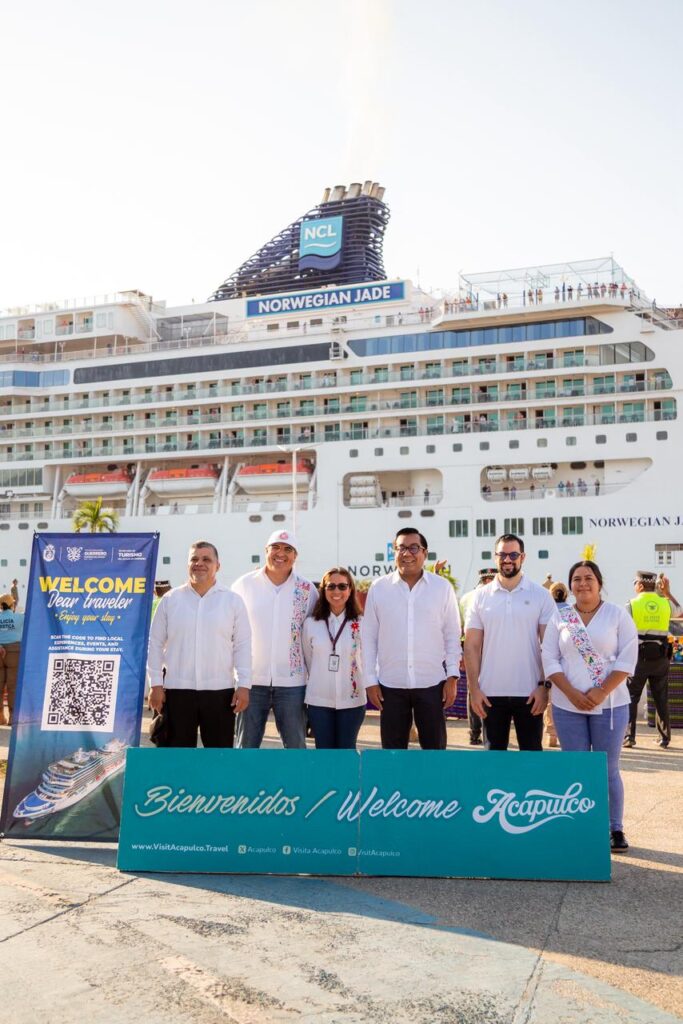 Acapulco, Gro., 16 de febrero de 2026.- La mañana de este lunes arribó al puerto de Acapulco el crucero Norwegian Jade, con 2 mil 287 pasajeros y mil ocho tripulantes a bordo, convirtiéndose en la octava embarcación que llega a Guerrero en lo que va del año.