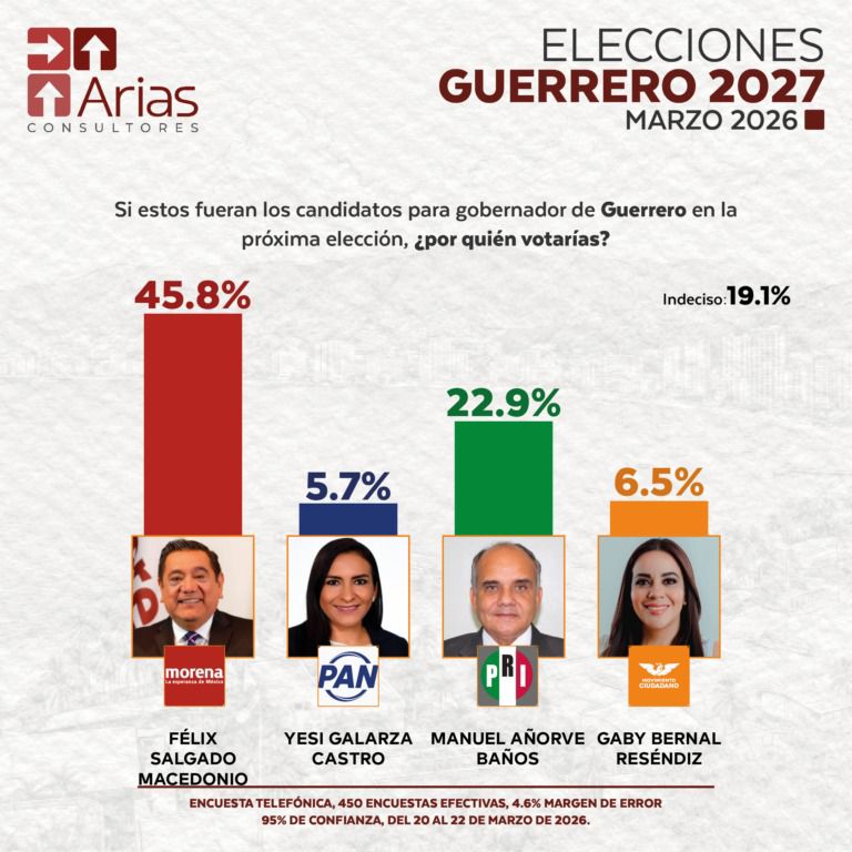 Encabeza Félix Salgado encuesta de marzo con 45.8 por ciento