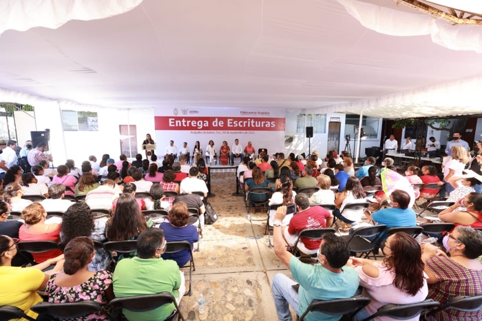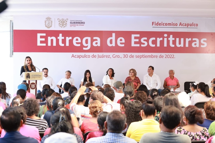 Acapulco, Gro., 30 de septiembre de 2022.- Para dar certeza jurídica y certidumbre al patrimonio de 371 familias acapulqueñas, la gobernadora Evelyn Salgado Pineda entregó igual número de escrituras a colonos de más de 73 asentamientos poblacionales ubicados en distintas partes del puerto. Con esta acción se atiende una demanda histórica, mediante la cual los beneficiados contarán con el documento que acredita legalmente la posesión de sus bienes inmuebles.