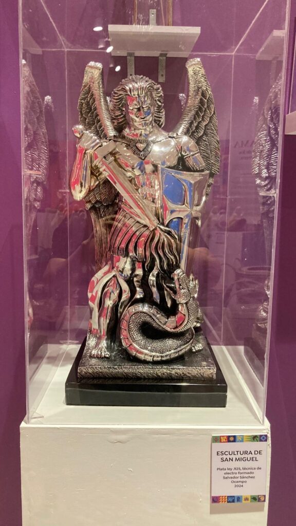 En la sala de exposición temporal del Museo Nacional de los Pueblos Mágicos (MUNPUMA), se exhibe por parte del pueblo mágico de Taxco de Alarcón, piezas de joyería y escultura en plata, algunas participantes del Festival Nacional de la Plata. Así como arte realizado con palma, de la localidad de Tlamacazapa.