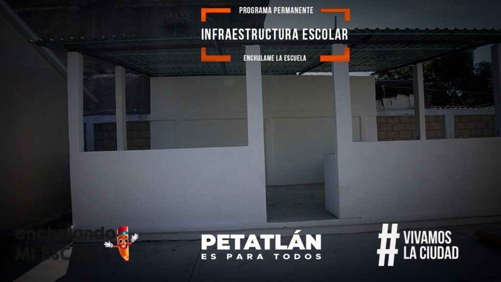 Petatlán Gro, a 01 de diciembre de 2022.- Como parte de las acciones del programa “Enchulando la Escuela” impulsado por el presidente Municipal, Javier Aguilar “El Tocumbo”, se realizó la construcción del techado y aplicación de pintura del área de cocina, la construcción de diez jardineras, demolición del circuito de rampas que se encontraban mal ubicadas, así como la construcción de 3 rampas de acceso en zonas estratégicas en el Jardín de Niños Miguel Bernal.