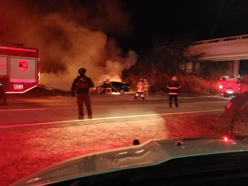 Elementos de Bomberos acudieron de inmediato para sofocar el fuego y auxiliar a los ocupantes. Durante las labores, el carril con dirección al puerto fue cerrado, ya que las llamas también alcanzaron la maleza cercana.