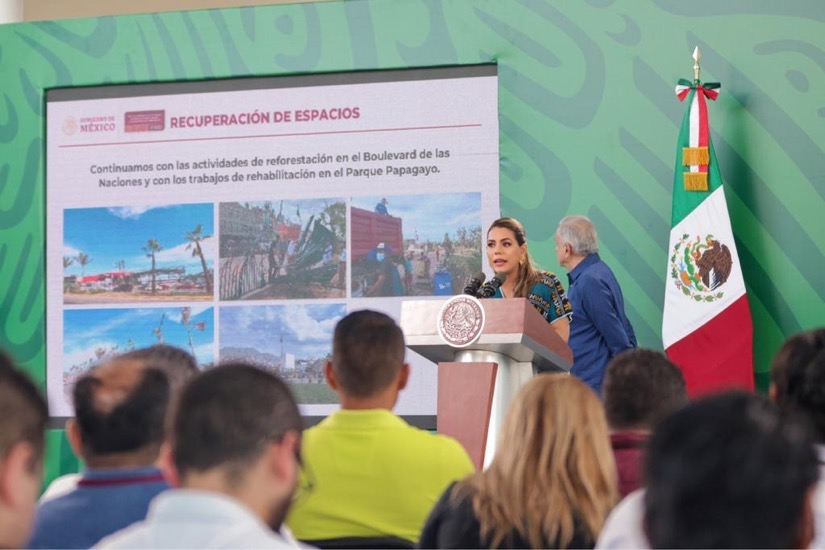 Acapulco, Gro., 20 de diciembre de 2023.- Durante su participación en la conferencia matutina que ofreció el presidente Andrés Manuel López Obrador desde el puerto de Acapulco, la gobernadora Evelyn Salgado Pineda expresó su reconocimiento al mandatario federal y a los integrantes de su gabinete, por su apoyo decidido para la atención de los municipios de Acapulco y Coyuca de Benítez, ante la situación generada por el huracán Otis.
