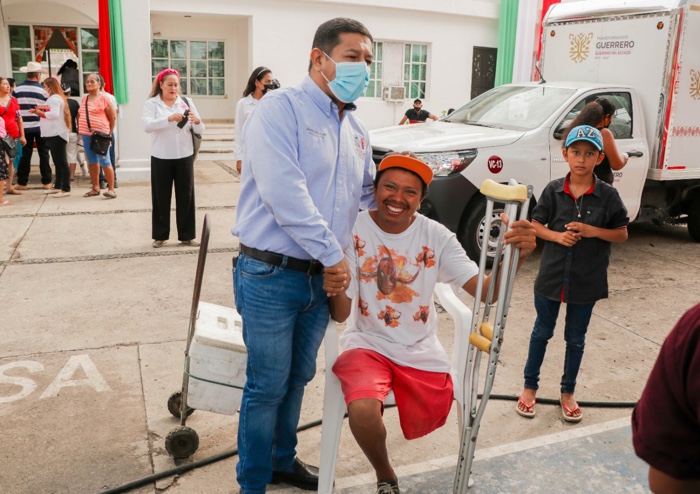 En su mensaje el Presidente Municipal Javier Aguilar Silva agradeció la presencia del Lic. José Antonio Abad Mena, y por su conducto envió el más fraterno de los saludos al el Dr. Alfonso Verduzco Director General de la Administración del Patrimonio de la Beneficencia Pública, el edil en su participación aprovechó para reconocer el atinado trabajo que lleva a cabo en cuanto a política social el Presidente de la Republica Andres Manuel Lopez Obrador, “a través de sus mecanismos.y programas se ha cuidado que se entreguen los apoyos y beneficios a quien más lo necesita de manera directa” además reconoció el trabajo que realiza la Gobernadora del Estado la Mtra. Evelyn Salgado Pineda en pro de las y los guerrenses en el sector salud” donde dijo “todo nuestro cariño y reconocimiento por su compromiso con la salud y en especial por nuestro pueblo”, el alcalde en su mensaje de la misma manera hizo extenso el agradecimiento al equipo de colaboradores que hicieron posible la gestión desde quienes recabaron e hicieron el senso de las personas con capacidades diferentes donde comentó “es un trabajo impresionante el que se realiza previo a la entrega de apoyos, para el equipo del DIF y al Director de Atención Ciudadana el Dr. Oscar Sandoval todo mi reconocimiento y se que para ustedes no hay mayor satisfacción de apoyar de primera mano a quienes más lo necesitan” concluyó