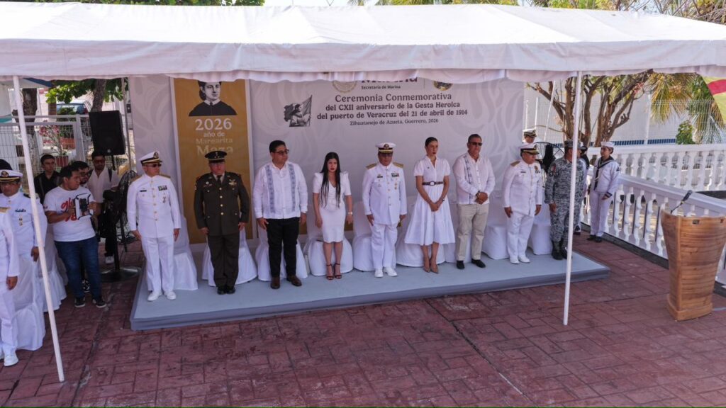 Zihuatanejo de Azueta, Gro., a 21 de abril de 2026.- La Secretaría de Marina a través de Décima Octava Zona Naval, con sede en Zihuatanejo de Azueta, Gro, informa que hoy se llevó a cabo la Ceremonia Conmemorativa del 112 Aniversario de la Gesta Heroica del 21 de abril de 1914, en el puerto de Veracruz.