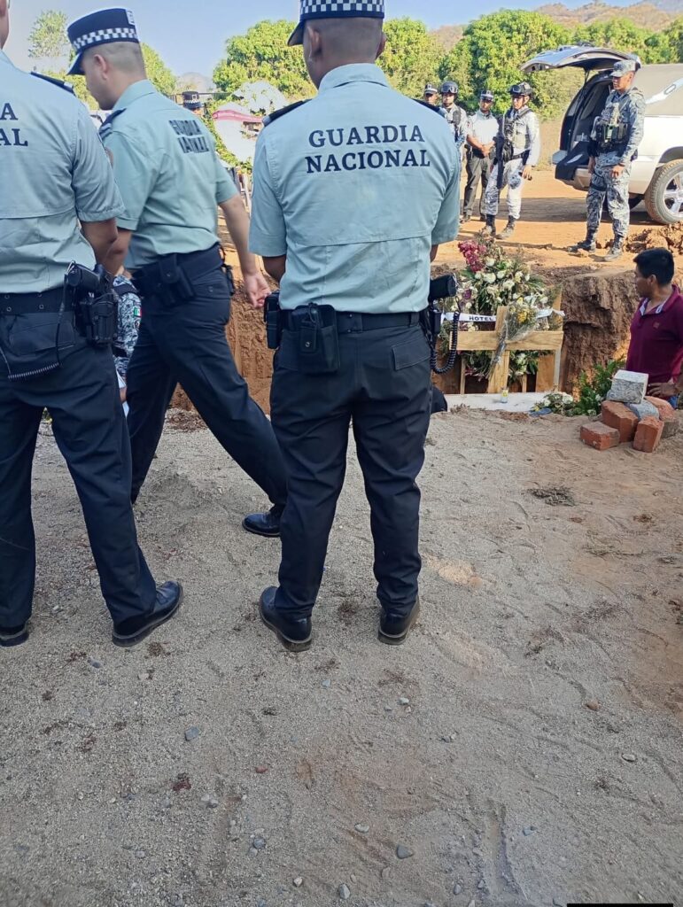 El féretro fue recibido por familiares, amigos y compañeros de corporación, quienes lo acompañaron hasta su vivienda, donde se llevó a cabo una breve velación, resguarda por elementos de la Guardia Nacional. Posteriormente, el cuerpo fue trasladado al panteón municipal de Las Pozas para su sepultura.