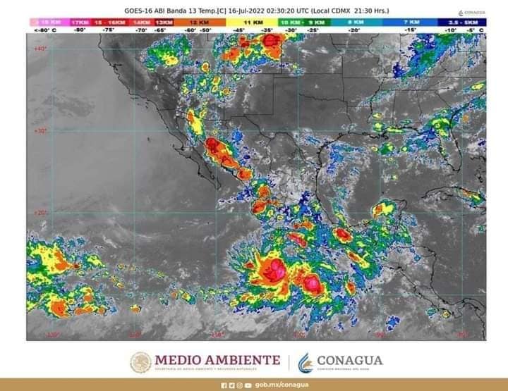 Sus bandas nubosas y un canal de baja presión extendido desde el noroeste hasta el centro del país ocasionará las precipitaciones que serán con descargas eléctricas, además de oleaje de uno a dos metros de altura en el litoral de Guerrero y rachas de viento de 50 a 60 kilómetros por hora.