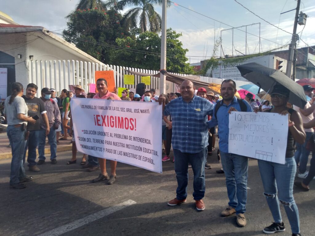 Padres de familia de la secundaria José Martí, marcharon desde la escuela hasta la oficina de Finanzas en Zihuatanejo y posteriormente cerraron la calle Heroico Colegio Militar, para exigir atención de la Secretaría de Educación Guerrero.