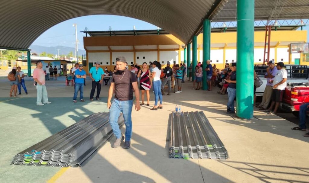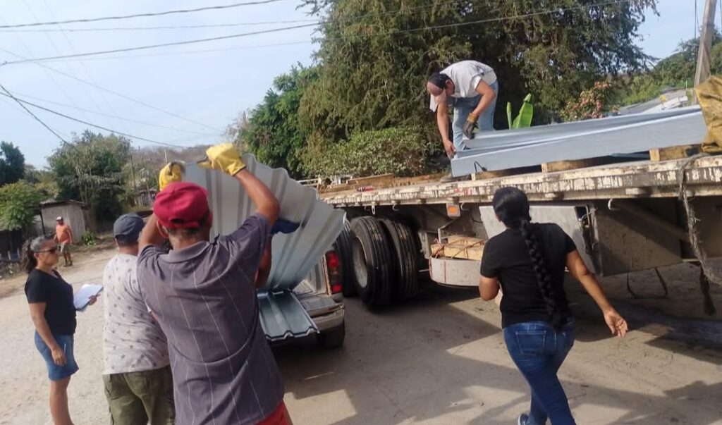 En Petatlán, repartió 1990 piezas de lamina calibre 32 de 3.05 metros y 20 piezas de 4.27 metros.