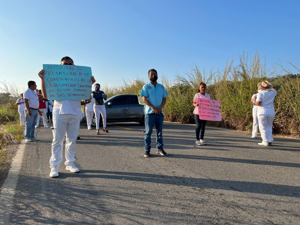 Desde las 8:00 horas los trabajadores pararon labores y además realzaron bloqueos en la carretera Zihuatanejo-Lázaro Cárdenas, entronque de le La Unión y en la Acapulco-Zihuatanejo frente al Hospital Básico Comunitario de Petatlán.