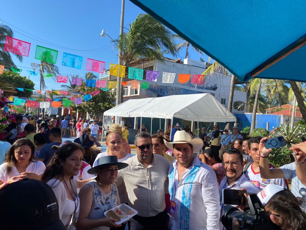 Por instrucciones del alcalde, Crescencio Reyes Torres, este sábado la presidenta honoraria del DIF Municipal, Rebeca Núñez de Reyes, encabezó el stand de La Unión que se colocó en playa Bonfil, en el cual se presentó la versión unionense del pescado a la talla para la demostración y degustación de los turistas, quienes mostraron interés por los destinos de playa como lo son Troncones, La Saladita y La Majahua.