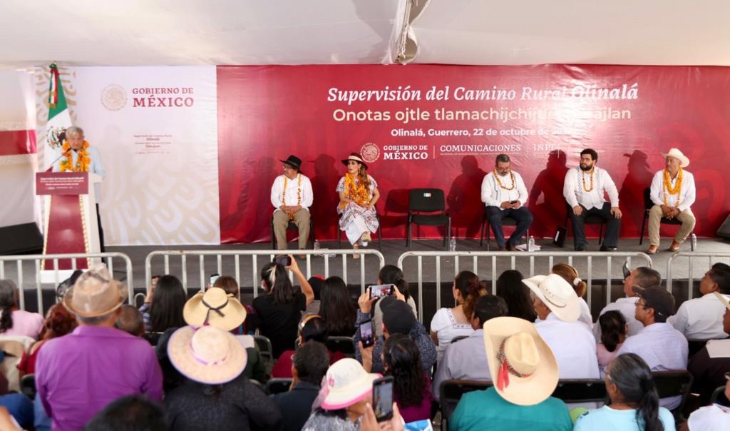 En el caso de Olinalá, se atienden cinco tramos carreteros en cinco comunidades nahuas que suman un total de 9.6 kilómetros con una inversión de 47 millones de pesos, con un avance del 70 por ciento, generando 500 empleos directos e indirectos.