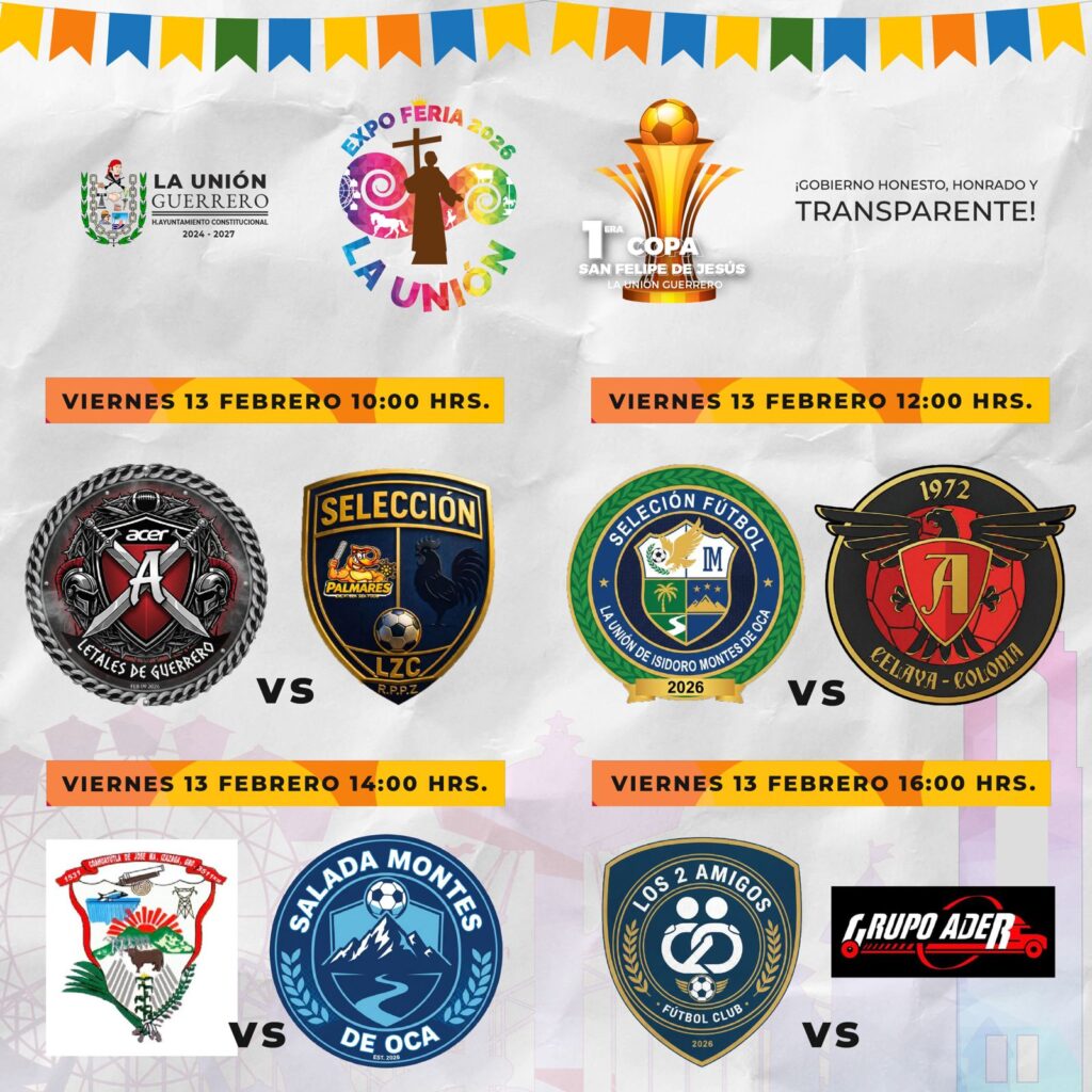 La Unión, Gro. 12 feb 2026.- La emoción y la pasión por el fútbol se vivirán al máximo este fin de semana en la cabecera municipal de La Unión, donde se llevará a cabo un torneo corto como parte de las actividades deportivas de la Expo Feria San Felipe de Jesús, impulsada por el presidente municipal José Francisco Suazo Espino.