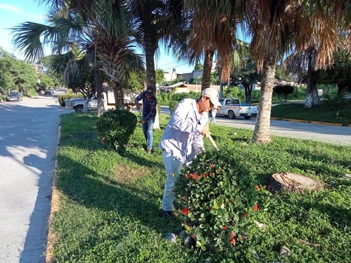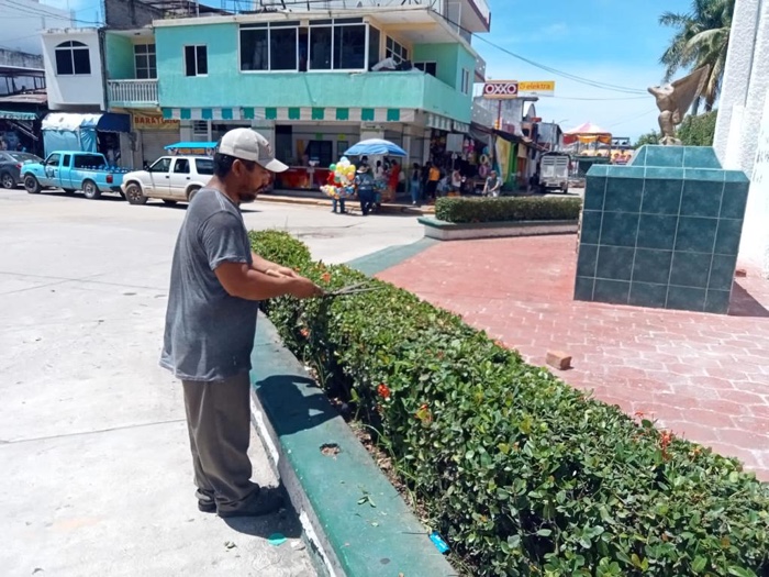 Actualmente se lleva a cabo el mantenimiento de áreas verdes en la Plaza Municipal, así como en la avenida principal del municipio, esto con la finalidad de mejorar la imagen del primer cuadro de la ciudad.