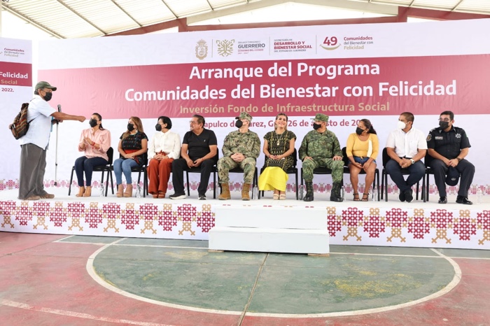Acapulco, Gro., 26 de agosto de 2022.- Con el propósito de impulsar acciones de promoción y desarrollo social, que dignifiquen la vida de las familias guerrerenses, la gobernadora del estado Evelyn Salgado Pineda dio el arranque del Programa Comunidades del Bienestar con Felicidad en la colonia Emiliano Zapata de Acapulco. Se trata de una estrategia transversal e integral, que mediante la participación de las distintas dependencias del gobierno estatal, ofrece un esquema que trabaja bajo los ejes de Servicios Básicos; Ingresos y Alimentos; Educación; Salud, así como Desarrollo Humano y Comunitario.