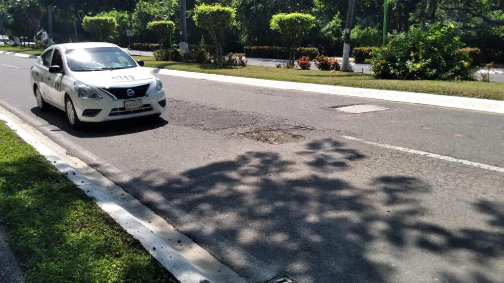 Permisionarios del transporte público, de las rutas a Ixtapa, denunciaron que hay demasiados baches en el bulevar principal, incluso un vehículo se ponchó a la altura del hotel Pacífica.