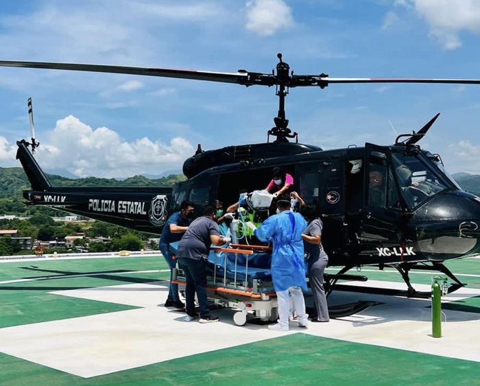 Tlapa de Comonfort, Gro., 07 de septiembre del 2022.- El Gobierno del Estado de Guerrero, a través del Centro Regulador de Urgencias Médicas de la Secretaría de Salud, coordinó el traslado vía aérea de un bebé de dos meses de edad, de Tlapa de Comonfort al Hospital General del Quemado, para que reciba atención médica especializada.