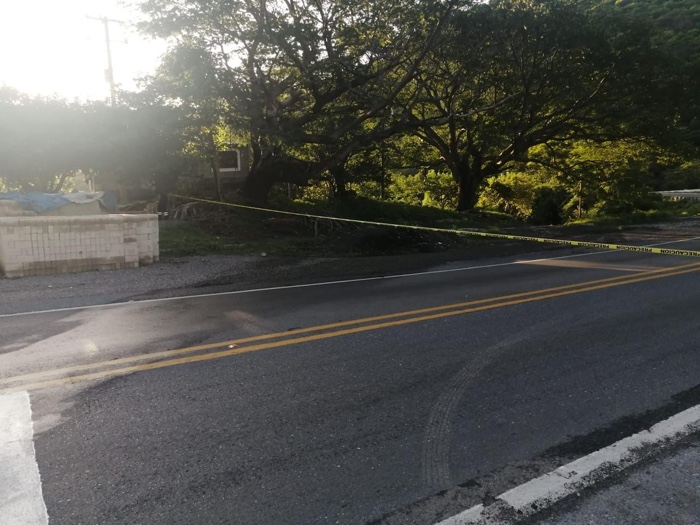 Personal operativo del Centro de Atención a Emergencias Región Norte, dependiente de esta Secretaría, mantienen acordonada la zona, mientras arriban al lugar personal especializado en el manejo de cianuro, proveniente del estado de Morelos, para controlar una fuga que presenta la unidad accidentada.