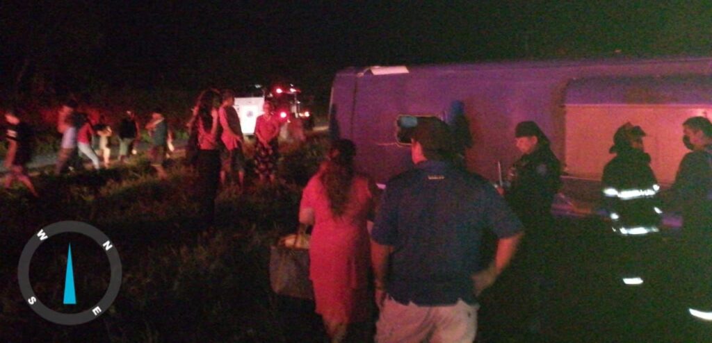 Se trata de un camión de pasajeros de la empresa Futura con número económico 1098, procedente del estado de Jalisco, que a las 6:00 horas aproximadamente, derrapó y volcó en el entronque de la comunidad.